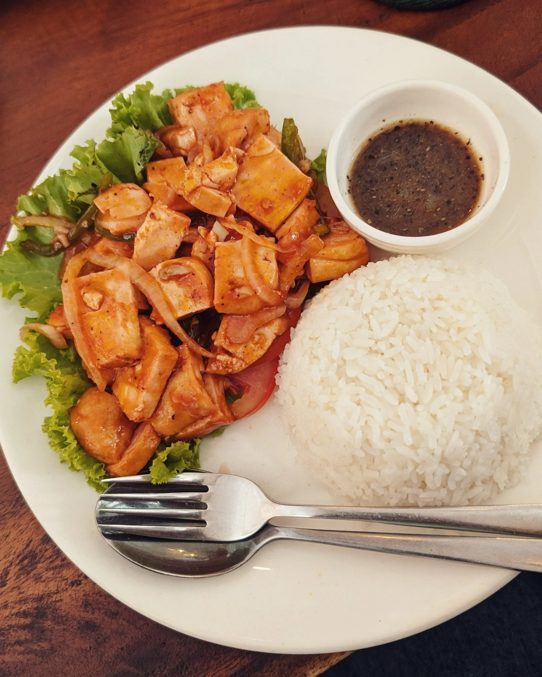 Our first meal in Siem Reap (and essentially, Cambodia) was at Tevy’s Place and it really was the perfect choice! It’s run by Tevy, who has a smile so bright it can rival the sun and serves up food that hits the spot. I also really liked Banlle Vegetarian Restaurant, I felt their portions were generous enough to serve two. I had Lok Lak for the first time here and adored it. I got pineapple vegetable curry through room service one day that was just as delicious while the spring rolls in Brother Bong Cafe were unique! And if like me, you start jonesing for Indian food no matter where you are, I highly recommend Travancore! Brolaom coffee was a great refuge from the heat one day with exactly the kind of aesthetics I imagine for my future home. Meanwhile, my first meal in Phnom Penh was at Backyard Cafe in the form of a gluten free breakfast burrito. Pu Rock Cafe is where I had the Tofu Lok Lak I can’t seem to shut up about and Taste Budz had Malaysian-Indian food vibes!